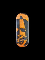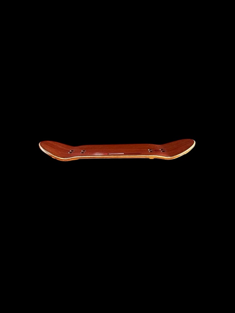 35mm x 97mm Eggsicle “Michael Myers Split”. Fully hand cut split ply, with a hand burned and painted top ply. Collins Wood decks currently have a wheelbase of 59mm. Concave 1.5mm, and a kick degree of about 22.5 with an ever so slight raise in the nose. Each deck comes with foam tape, stickers, and good luck charm.