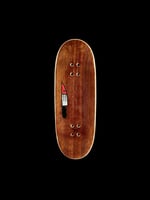 35mm x 97mm Eggsicle “Michael Myers Split”. Fully hand cut split ply, with a hand burned and painted top ply. Collins Wood decks currently have a wheelbase of 59mm. Concave 1.5mm, and a kick degree of about 22.5 with an ever so slight raise in the nose. Each deck comes with foam tape, stickers, and good luck charm.