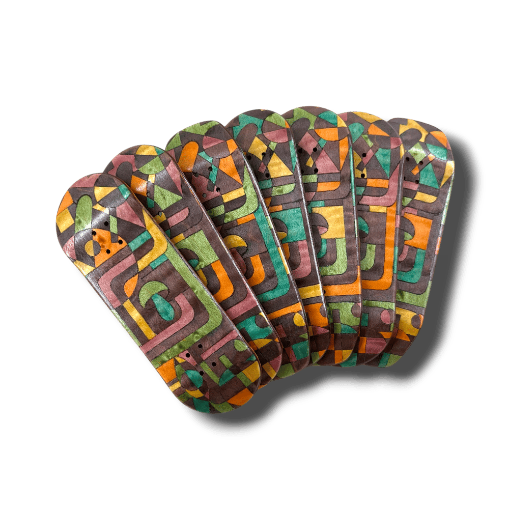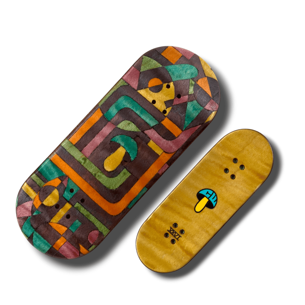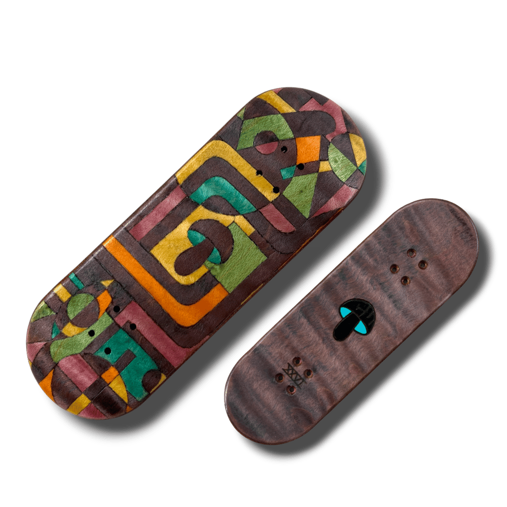 Making their return from the depths of my ADHD. I present to you the 'Myco Tech" split ply series. Pressed in the classic tried and true CW mold. Now called the "Delta" mold. Wheelbase of 59mm. Mellow concave. Mid kicks. With an ever so slight raise in the nose. These split plies were meticulously hand cut. With hand burned and painted top plies. Making each truly one of a kind pieces of art. Decks come with foam tape, stickers, and a good luck mushroom crystal.